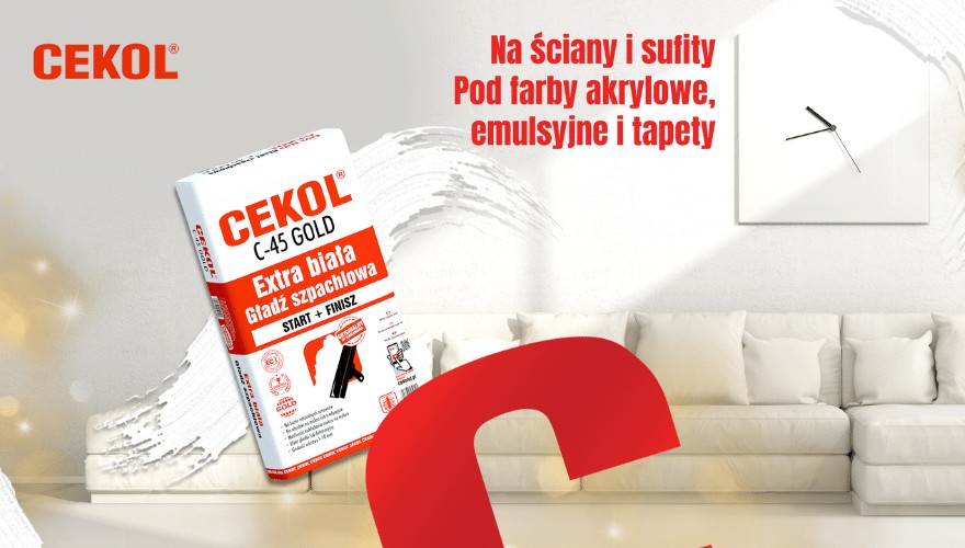 Biała masa szpachlowa do ścian CEKOL C-45 Gold to wybór idealny zarówno na start, jak i na finisz. To doskonały produkt pozwalający uzyskać gładki lub dekoracyjny efekt. To także synonim misji, jaką postawiła przed sobą marka CEKOL – pamiętania o tradycji, która jest fundamentem wszystkich dobrze przemyślanych działań, ale i otwierania się na nowe rzeczy i technologie. Ale przede wszystkim - na potrzeby klientów! CEKOL C-45 Gold to gładź szpachlowa bezpyłowa, która zachwyci więc zarówno znających nas, jak i nowych użytkowników.